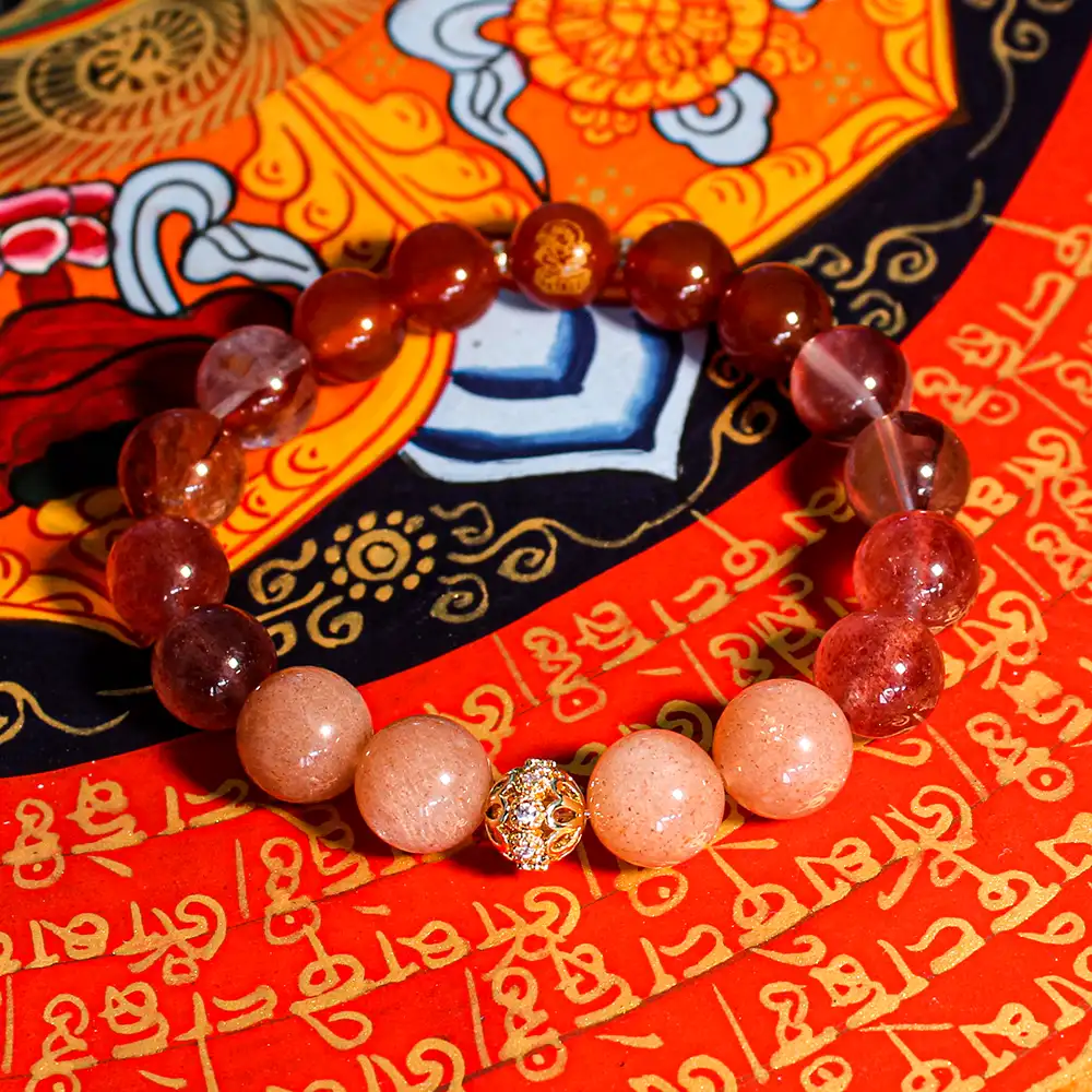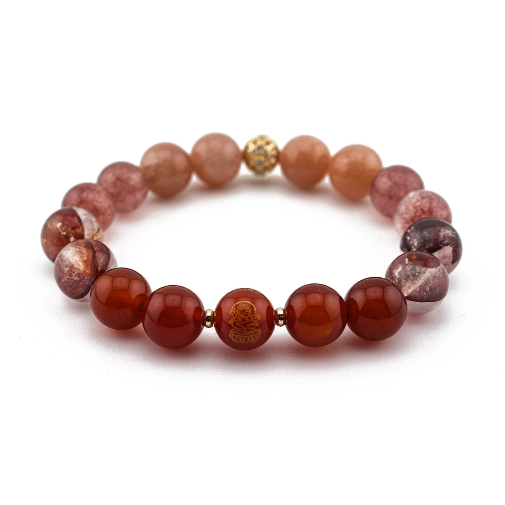 This exquisite Saffron Blaze bracelet embodies the dynamic essence of the Fire Element, featuring a captivating array of warm red and amber-hued crystals. These vibrant stones ignite passion and vitality, inspiring confidence and courage in the wearer. The rich, fiery tones are beautifully complemented by a central golden accent, symbolizing transformation and strength. Perfect for those seeking to radiate warmth and embrace life’s adventures, this bracelet is a refined emblem of elegance and empowerment, channeling the transformative energy of fire to invigorate the spirit and illuminate the path to personal growth.
