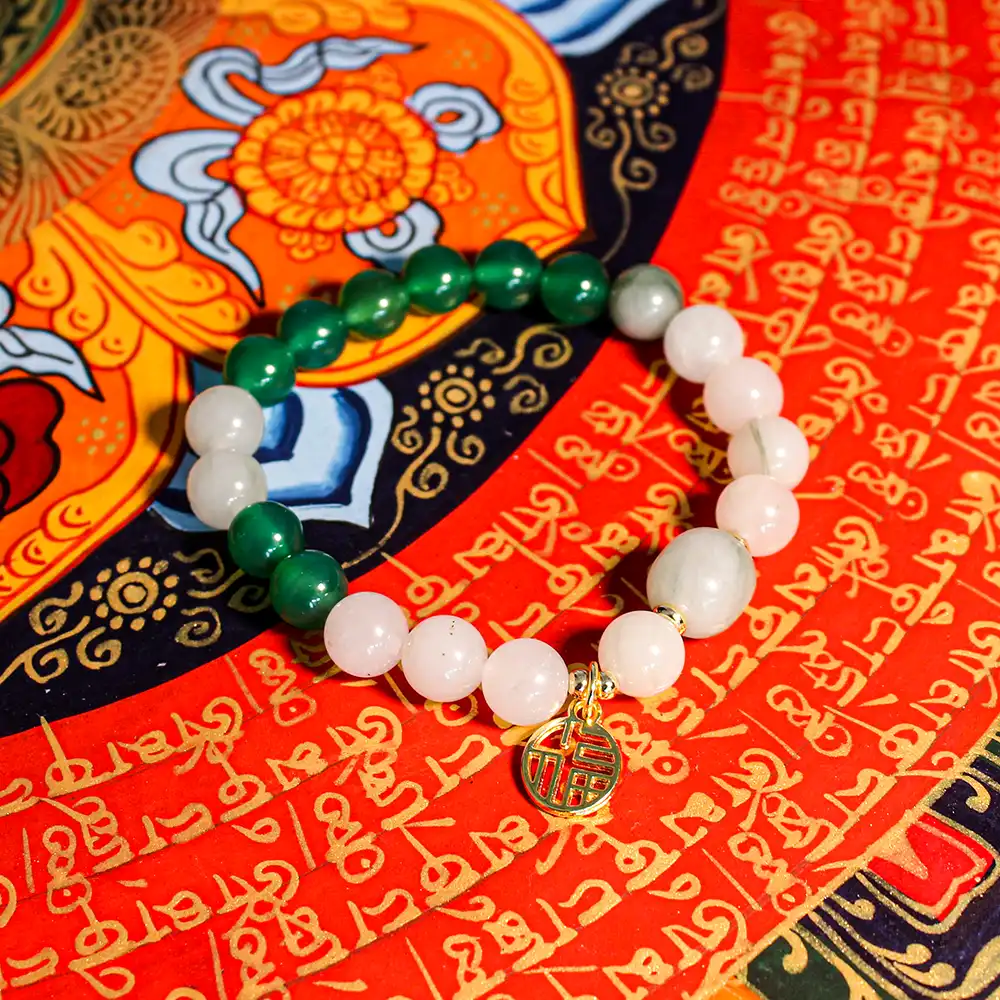 This exquisite crystal bracelet embodies the essence of the Wood Element, featuring a harmonious blend of green and clear crystals. The lush green stones symbolize growth and renewal, while the clear crystals enhance clarity and focus. Together, they channel the nurturing energy of wood, promoting creativity, resilience, and personal development. With delicate silver accents, this piece represents balance and vitality. Ideal for those seeking to cultivate inner strength and embrace new beginnings, this bracelet is a sophisticated symbol of elegance and transformation.